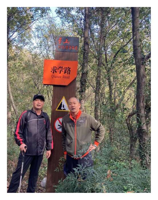 这次户外,我们走的环线,从终点又回到起点“求学路”路口。(京林禅寺方向的访仙路这次绕开了)。沿落叶零落的木梯步道到停车场,12点半结束这次活动,行程将近七公里,户外运动收获风景,放松愉悦心情,还锻炼了身体,这正是我们想要的结果。