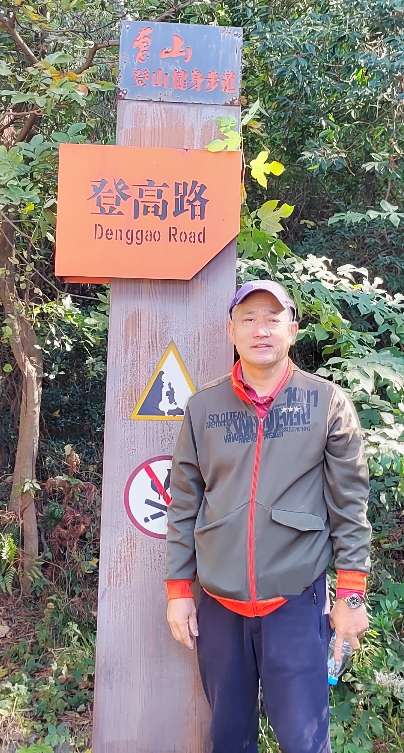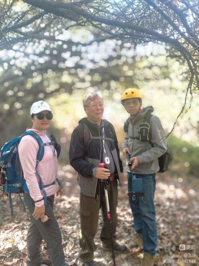 我们先从东面的“求学路”道口上行到棋盘峰,没休息,直接山头转到“无忧路”口下山。领队“原来如此”解释讲,囬头时我们还将转到棋盘峰,到时候大家再休息一下,拍拍照。