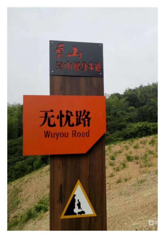 “无忧路”路牌这地方有个“十八弯”,以前开拖拉机走都得小心翼翼,坡陡弯急,青烟直冒。但风景很好,竹林碧波,栗树遍野,劲松苍翠,禽兽频见,偶尔也能看到野猪出没,山鸡扑楞惊飞。现在路况改善了,这里取名无忧路或许是个祈愿吧!