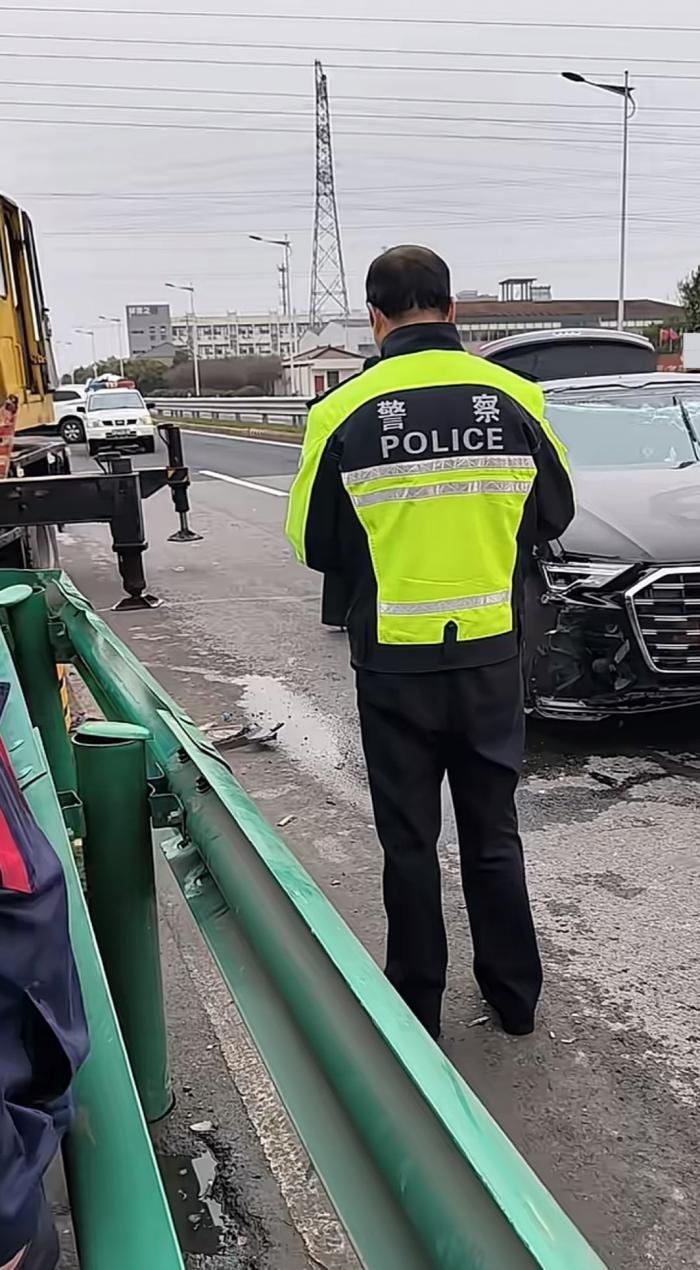 溧阳旧县一辆汽车四脚朝天倒在马路上!开车注意安全不是口号!一句开车注意安全,真的不是说说的,旧县这里,一辆黑色小轿车撞翻在地上,不知道具体怎么发生的,看到路边的护栏也有损伤,整个车子翻了过来,180度大翻转,现场来了吊车,后面车子被转过来,受损好像挺严重的,交警也来了!