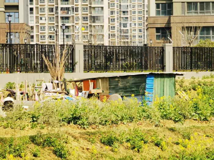 你就让他们搭一个地方放工具肥料吧,要不小区楼道都是这东西。哈哈