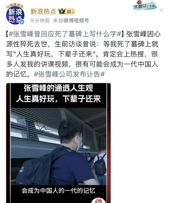 彼时,他说如果有一天他死了,各大平台会有个热搜叫“张雪峰死了”。他说他可能成为一代人的回忆,就像刘德华张学友一样,是一代人的回忆。