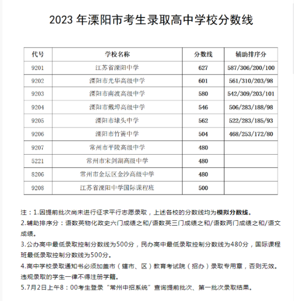 《垒垒咨询》2024年溧阳中考分数线最低多少可以读溧阳高中?