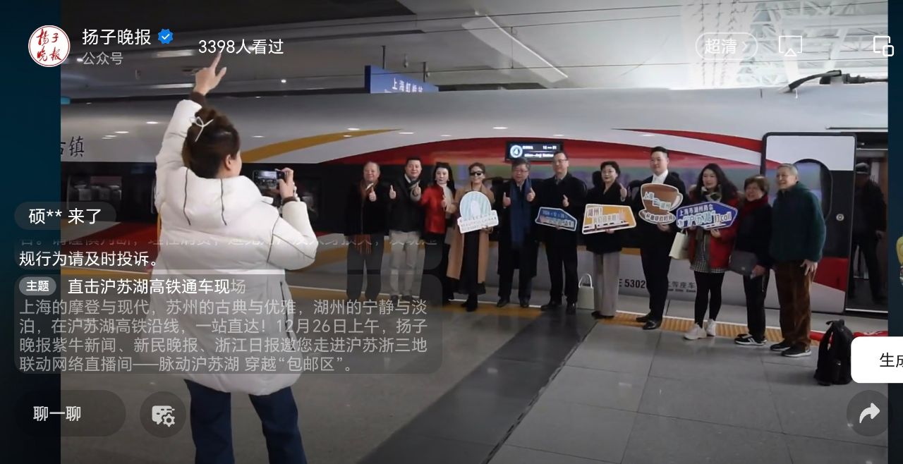 沪苏湖高铁将于12月26日开通运营车票自12月25日11时起对外发售旅客可通过12306铁路官方网站12306App、车站售票窗口铁路代售点等方式购票