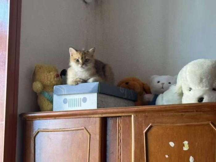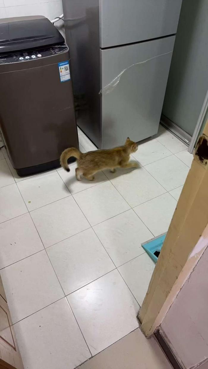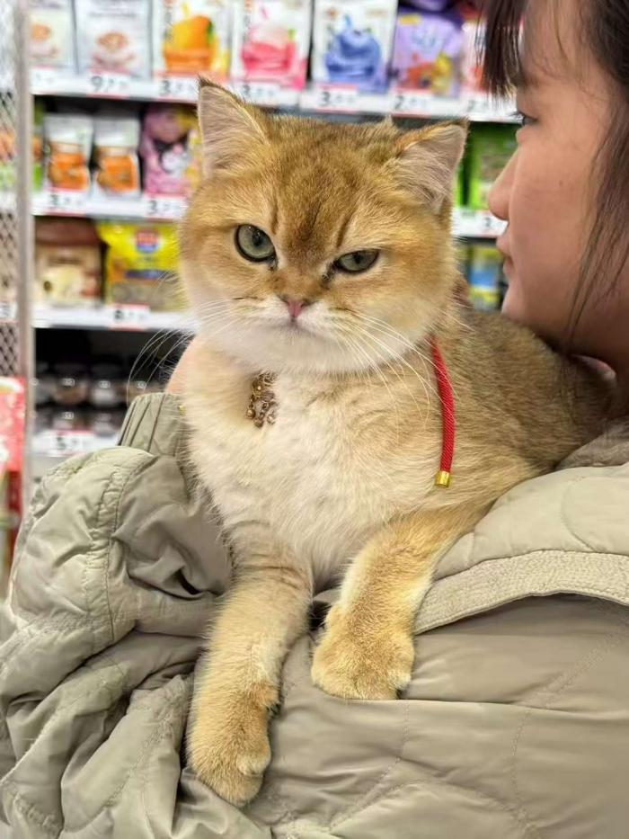 猫咪名字叫【蛋卷】,是只浑身【金色的金渐层短毛母猫】,至今未绝育,性格比较好很黏人。小猫的【脖子】有一块明显的【红色挠伤】。