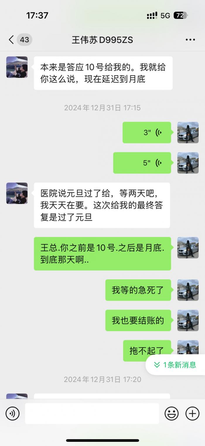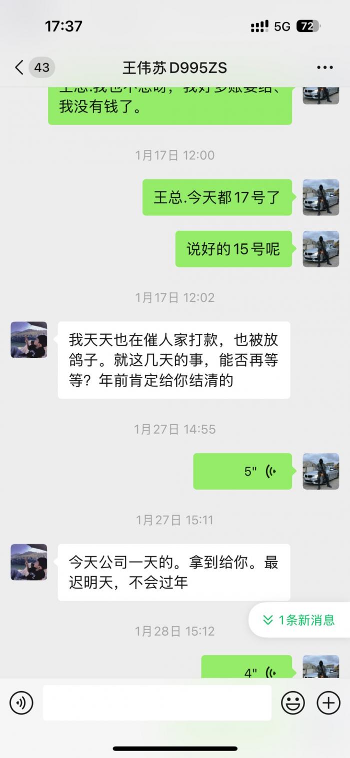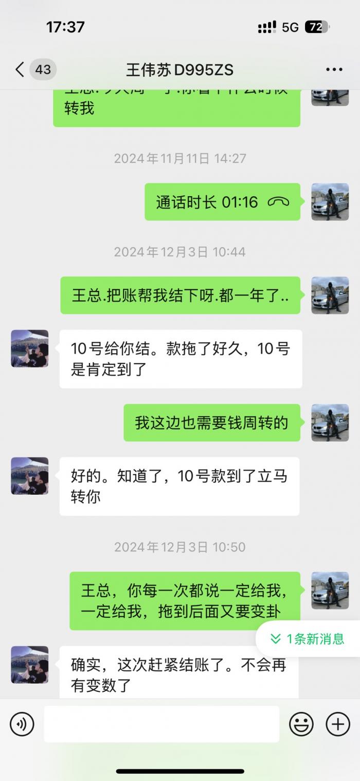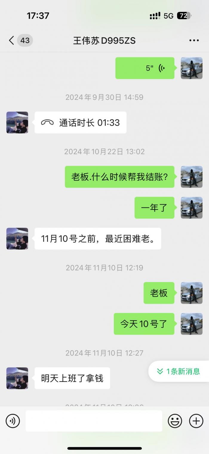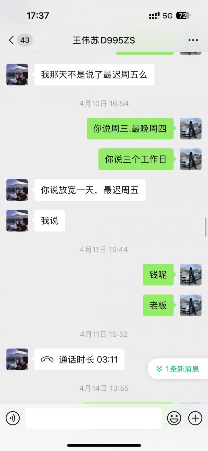 直接看微信截图聊天记录.从2023年底欠我的钱到2025年7月都不还.每次都是说月底.月中.1号.下个星期.次次都是空话.受不了这样的人.这个人到底是神一般的存在。有人认识吗?老家上兴那边的。千万不要和这种人来往。