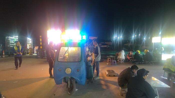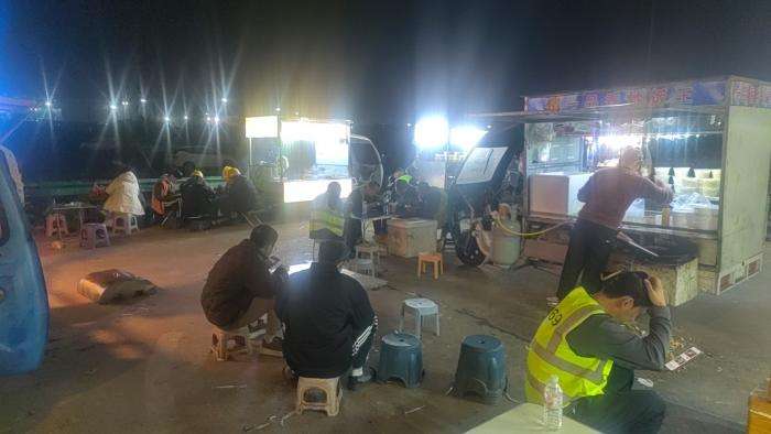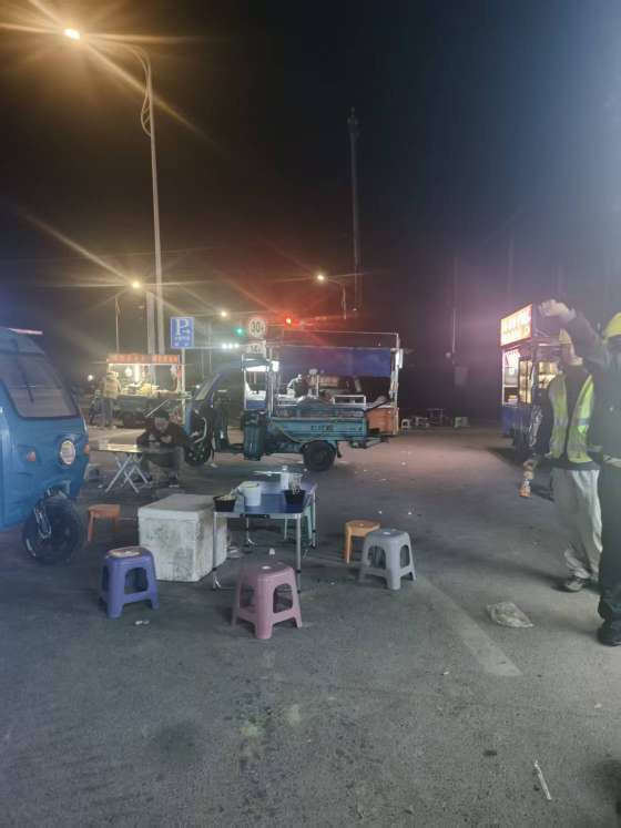 溧阳七号工地摆摊占用停车场,早上上班都停不了车
